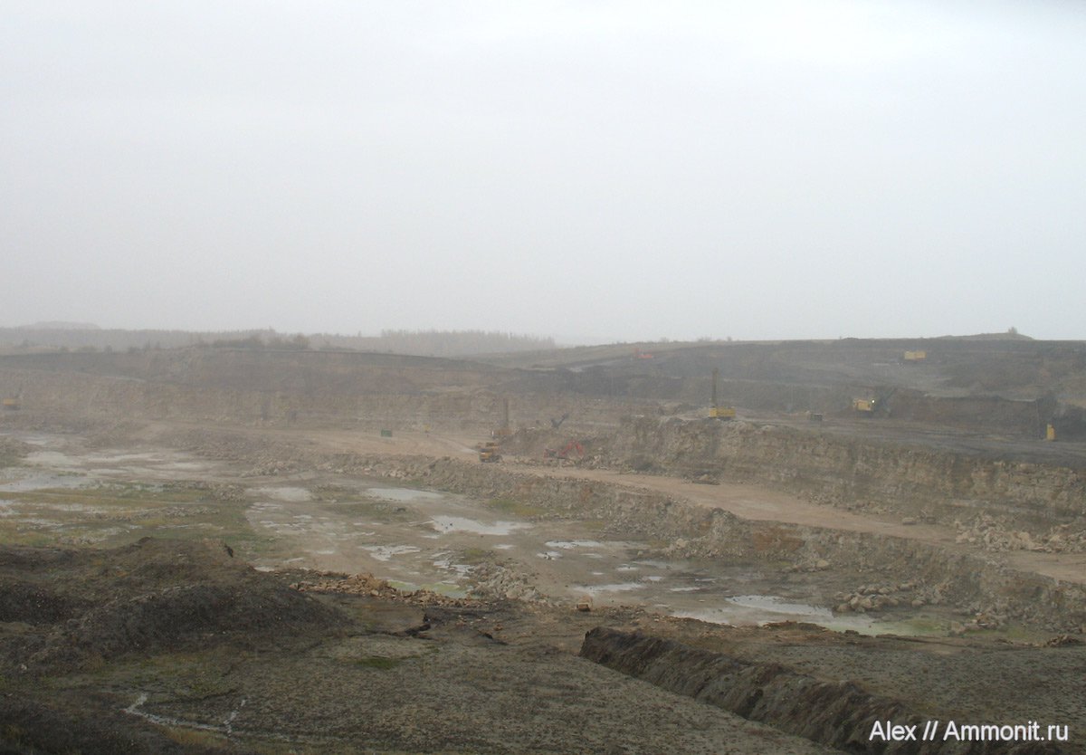 Карьер завода "Михайловцемент" мокнет под осенним дождем. Октябрь 2010 года, вид со старой стенки карьера.