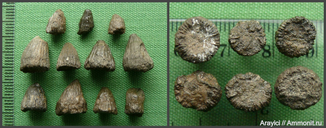 Найдены в Милятинском карьере зернистых фосфоритов. Ранее предполагал, что это зубы каких-то рептилий, но судя по сечению, образцы, наверное, следует отнести к губками или кораллам.