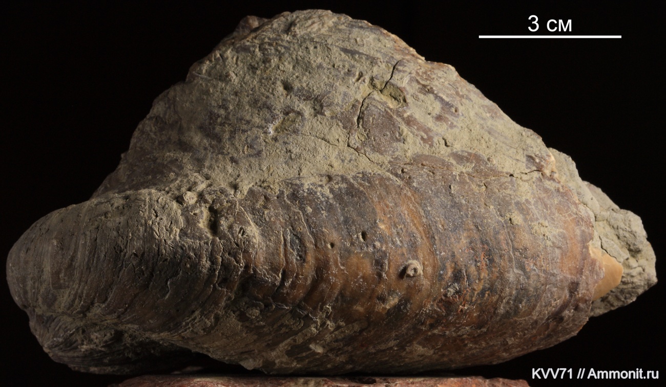 Крупная неравносторонняя раковина с почти целыми обеими створками из готерива горного Дагестана.