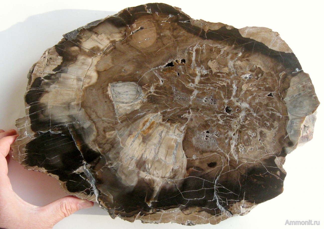Это теперь мой самый большой образец из Украины (34 х 24 см). Пришлось самому повозиться со шлифовкой и полировкой, так как в двух фирмах по обработке камня почему-то не справились. Сохранность структуры вполне хорошая, несмотря на размеры. Обычно у купных стволов вследствие перекристаллизации клеточная струкура нарушена или отсутствует совсем.