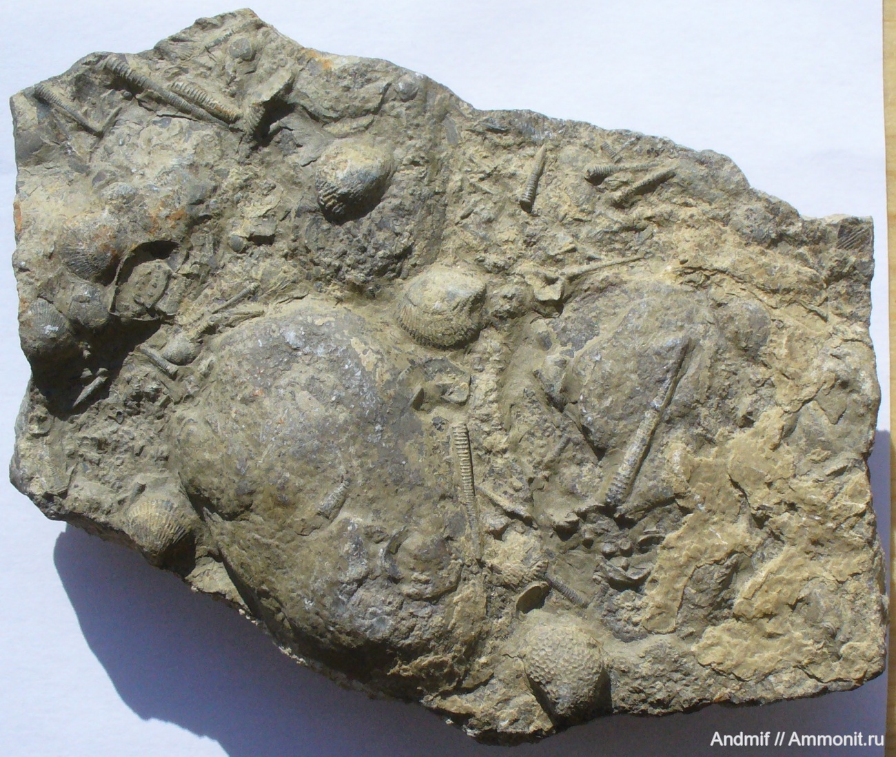 В венде брахиопод не было. На плитке нечто, похожее на тентакулиты. Это силур или девон. | ||||||