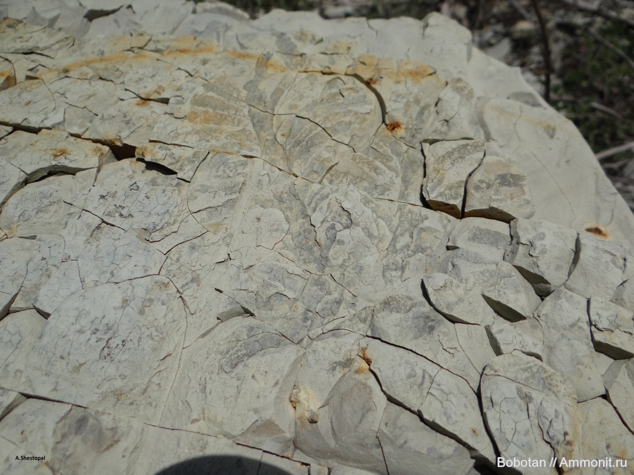 Многим в глинистых отложениях уже попадались следы в виде вееров или ветвей - так называемые следы Chondrites . На первый взгляд этот образец похож на Chondrites, но обратите внимание на центральный толстых ход, такая конструкция не характерна для следов Chondrites.
