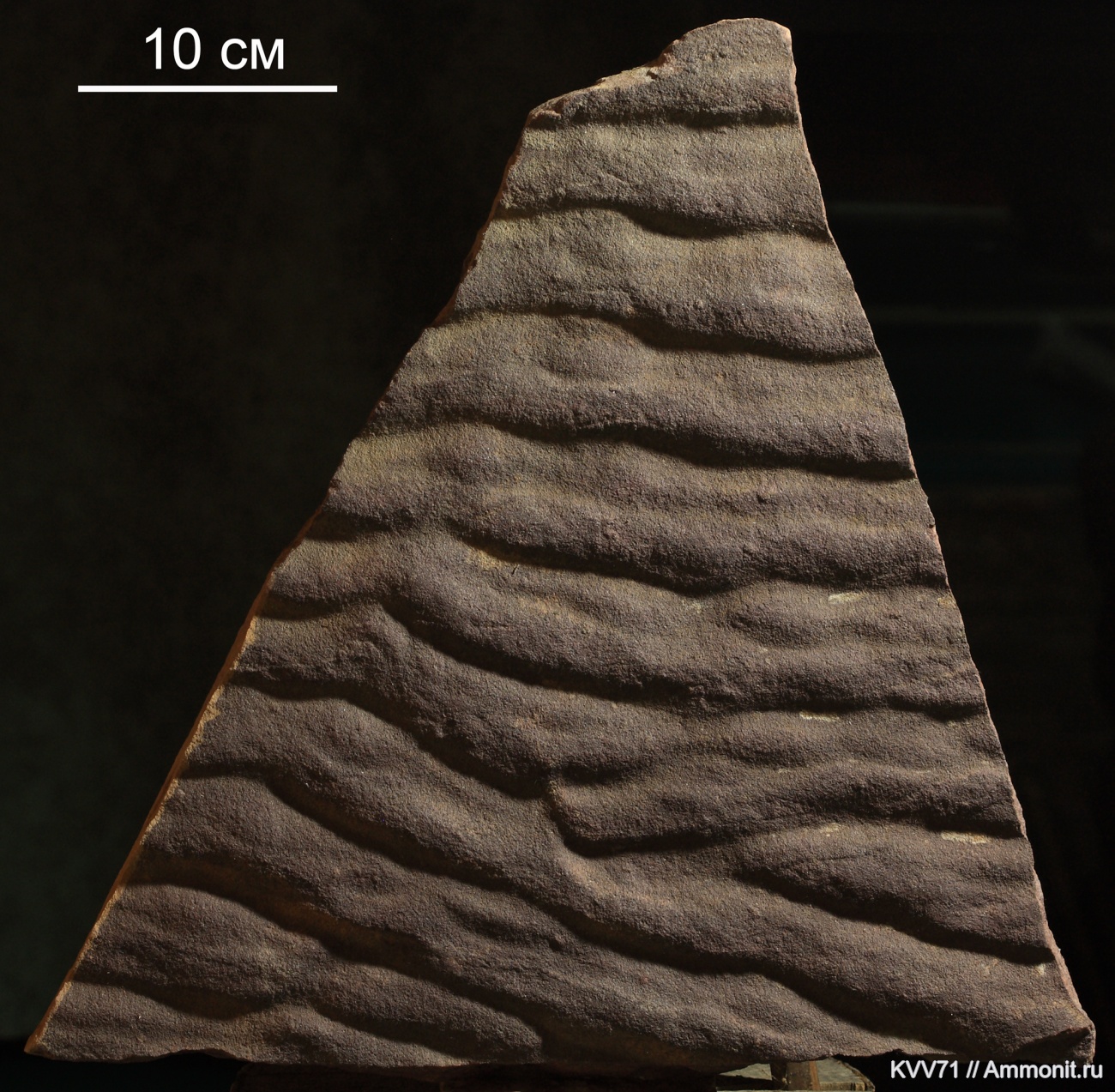 Образец был приобретен пару лет назад у пользователя сайта, одно время выкладывающего эти знаки ряби и потом ушедшего. В дискуссиях к его фотографиям Алексеем (mikmot) ,было высказано мнение об сохранении на этих знаках ряби следов бактериального мата.