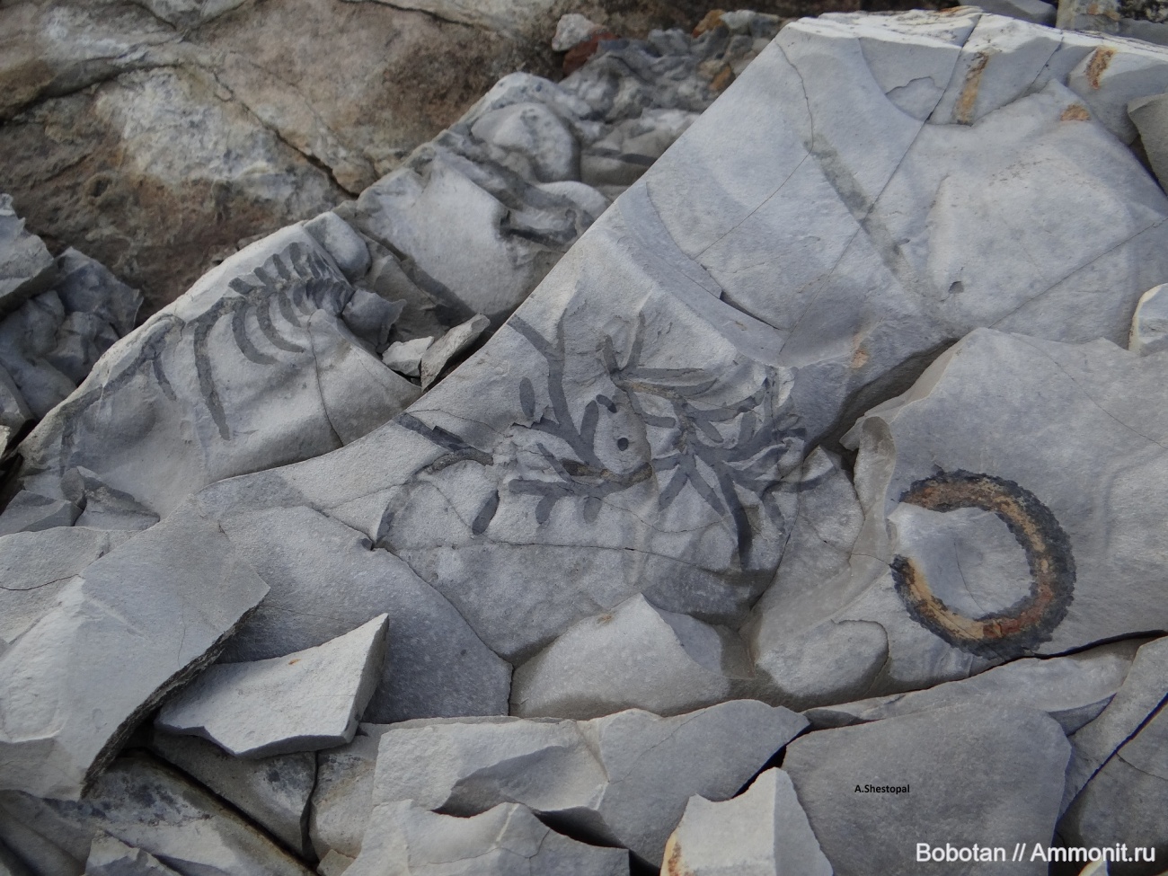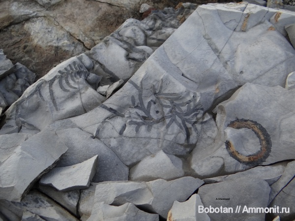 Ветвистое - норы, называемые Chondrites, чуть-чуть о них когда-то рассказывал - http://www.ammonit.ru/foto/39613.htm#184082