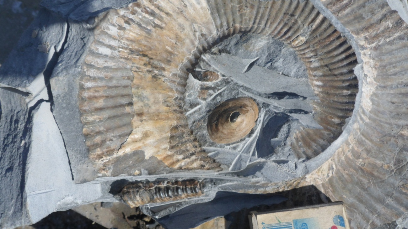 самого аммонита там нету Татьяна этот крупный отпечаток от аммонитоцероса а блюдечка и маленький гетероморф на месте | ||||||