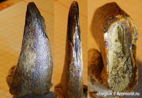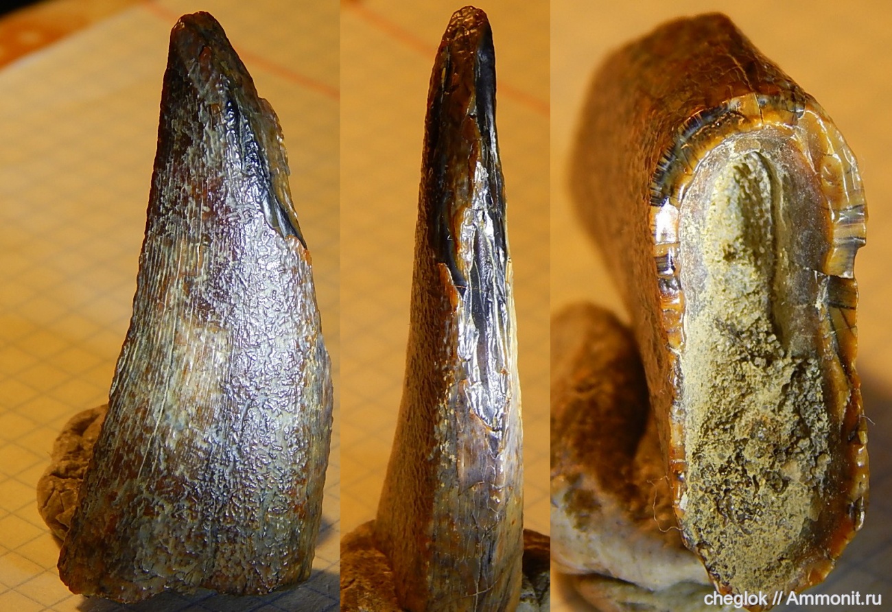 Раздобыл на днях зуб из Узбекистана -- Джаракудук, поселок Мингбулак, центральная часть Кызылкум, Навоийская область, Узбекистан. Такой уже есть, но динозавры не так уж обильны на сайте.Длина 53 мм, ширина 27