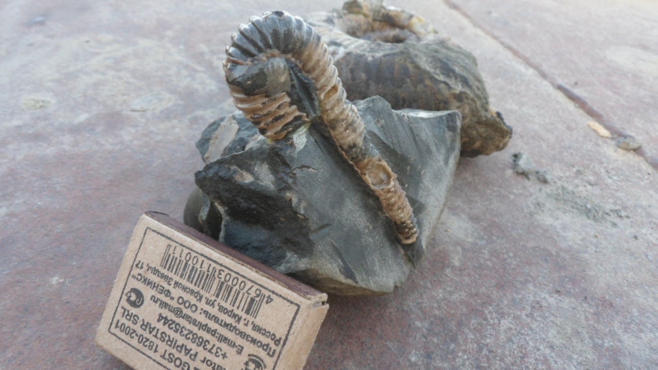 свежая находка аммонит интересен тем что имеет пустую жилую камеру породой забито только устье аммонита Фото Фото Фото