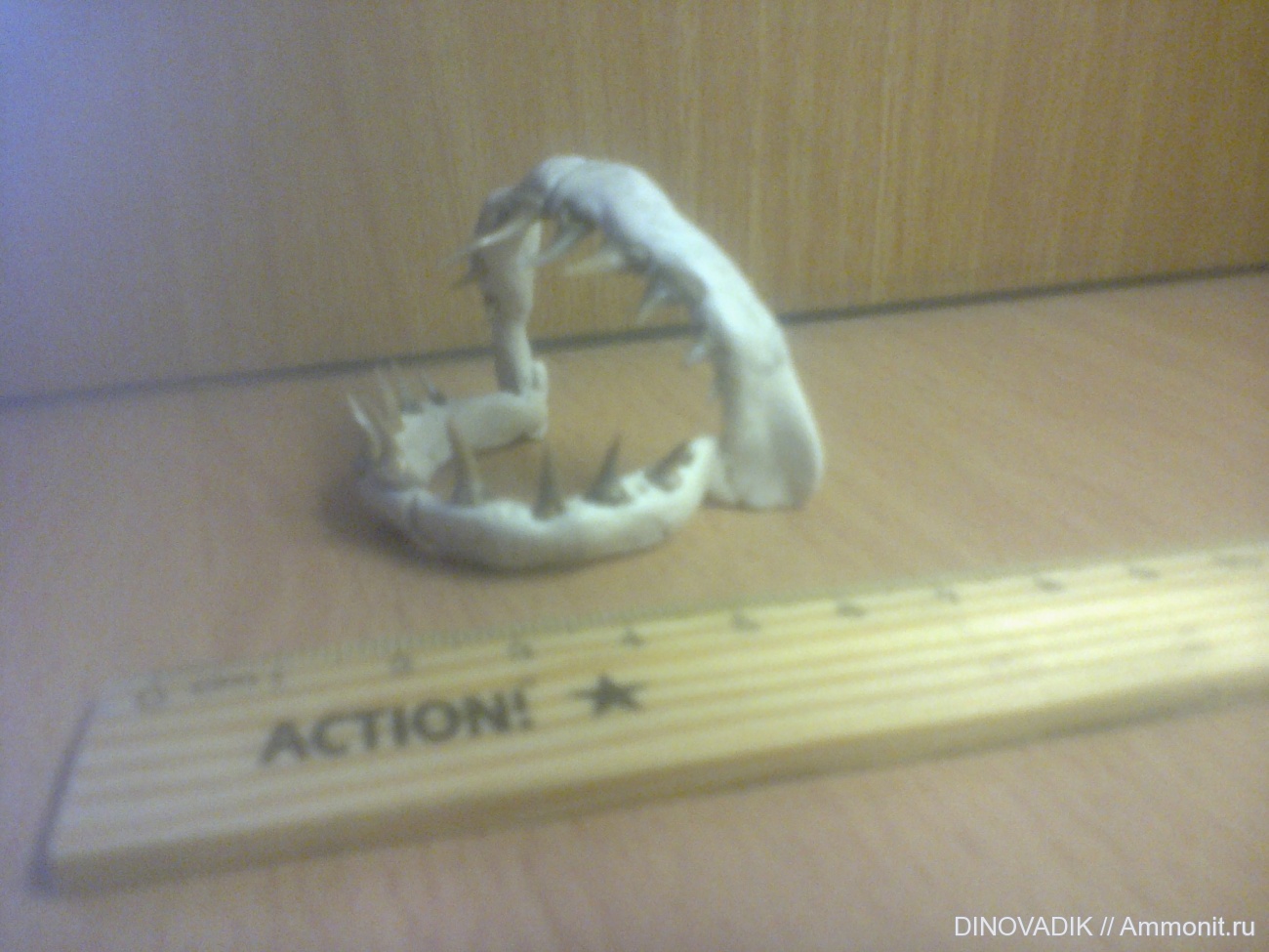 Я решил попробовать сделать макет челюстей eostriatolamia. Зубы далеко не все, но это все что есть. Да и размер маленький. Все зубы из Варавинского оврага.
