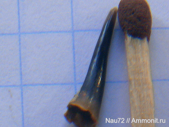 Не совсем четко видно присутствует ли на коронке струйчатость, если так, то может быть и зубом Scapanorhynchus. А до вида в таком состоянии не определить. | ||||||