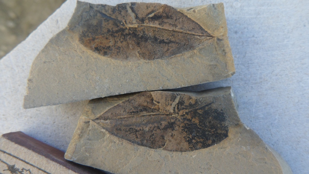 похож на отпечаток лавровый лист но не уверен найден вместе с отпечатками рыб