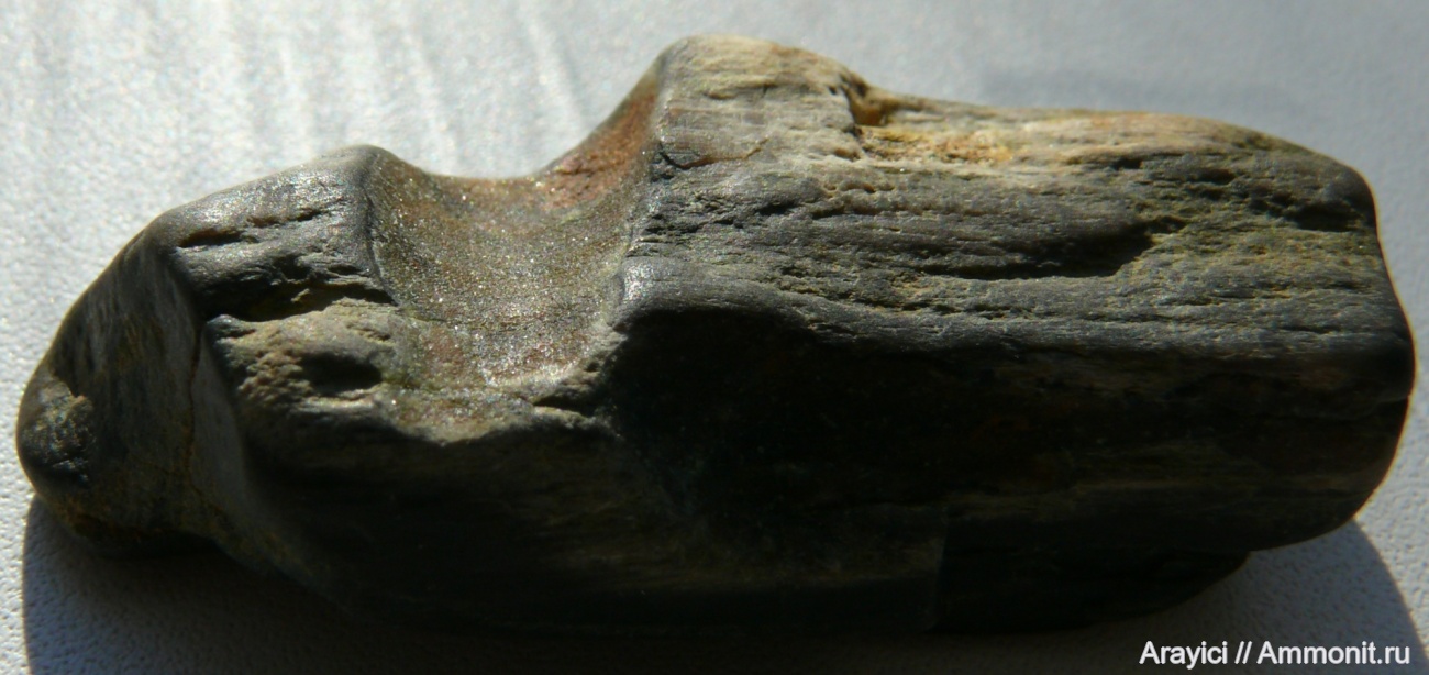 Щепка выглядит довольно монументально :) И кажется тяжелой. А выемка конечно может быть и остатком чьего-то хода, а может что-то постороннее там лежало (камень, большая ракуха и.т.д.) и мешало расти дереву. Иногда видим деревья, которые обрастают (поглощают) небольшие камни, оказавшиеся в стволе (вдавленные в него). Вот и получается дерево с камнем, который потом выпадет, а ямка останется. Но это как предположение.:) Кстати вот из недавно выставленных на сайте Окаменелая древесина с двустворками . Там конечно меньше выемки от вылетевших двустворок, но, как вариант, может у Вас что-то другое было. | ||||||