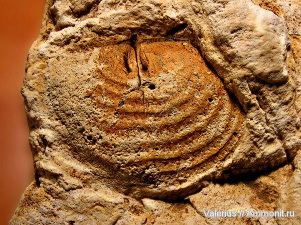 Отпечаток внутренней поверхности спинной створки брахиоподы (возможно эхинария)Возраст верхний карбон С3 am