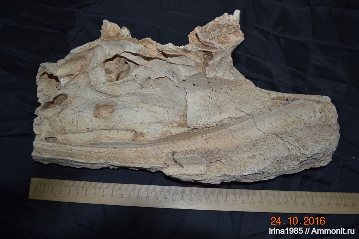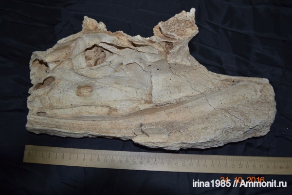 Судя по ячеистой структуре фрагмента (как и других осколков), можно предположить, что это часть черепа мамонта.Но это кайнозой, мамонты в мезозое еще не жили, то были времена динозавров. | ||||||