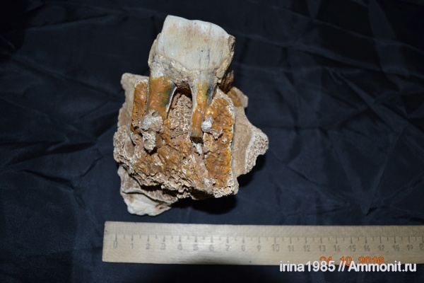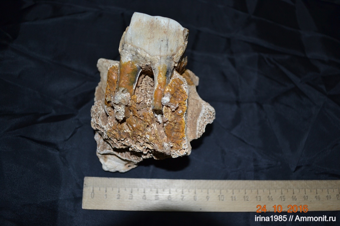 Фрагмент челюсти с зубом кого то из крупных млеков,но для того,чтобы вам помогли с определением,нужно фото жеват. поверхности. Возраст вряд ли старше плеистоцена,тем более он в светлых тонах. | ||||||