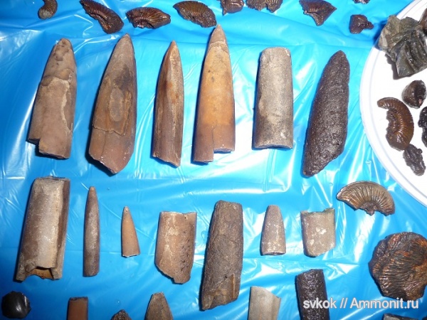 Найдены в местах выхода верхнеюрских глин в районе Марково. Лежали преимущественно по линии зимнего уровня воды в реке. Длина самых больших около 10 см, диаметр около 25 мм.