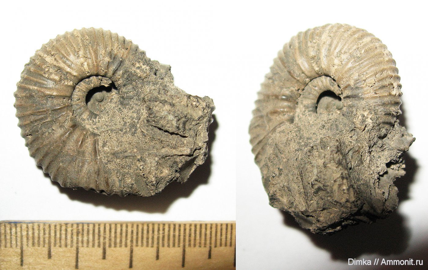 К сожалению размер раковины очень мал, но по всем признакам сильно напоминает начальные обороты Lomonossovella. Найден в карьере у д. Елкино, зона - virgatus, июнь, 1995 г.