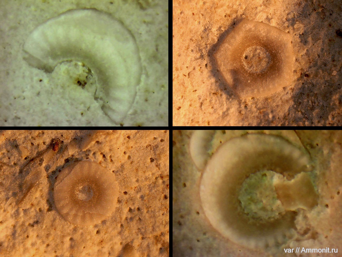 Фотография с помощью USB-микроскопа. Царев курган. Все фрагменты размерами до 2-2.5 мм. Все – с одного образца, возможно, перемещенного из Сокского карьера в процессе рекультивации. Вероятно, Ногинский горизонт гжельского яруса карбона.