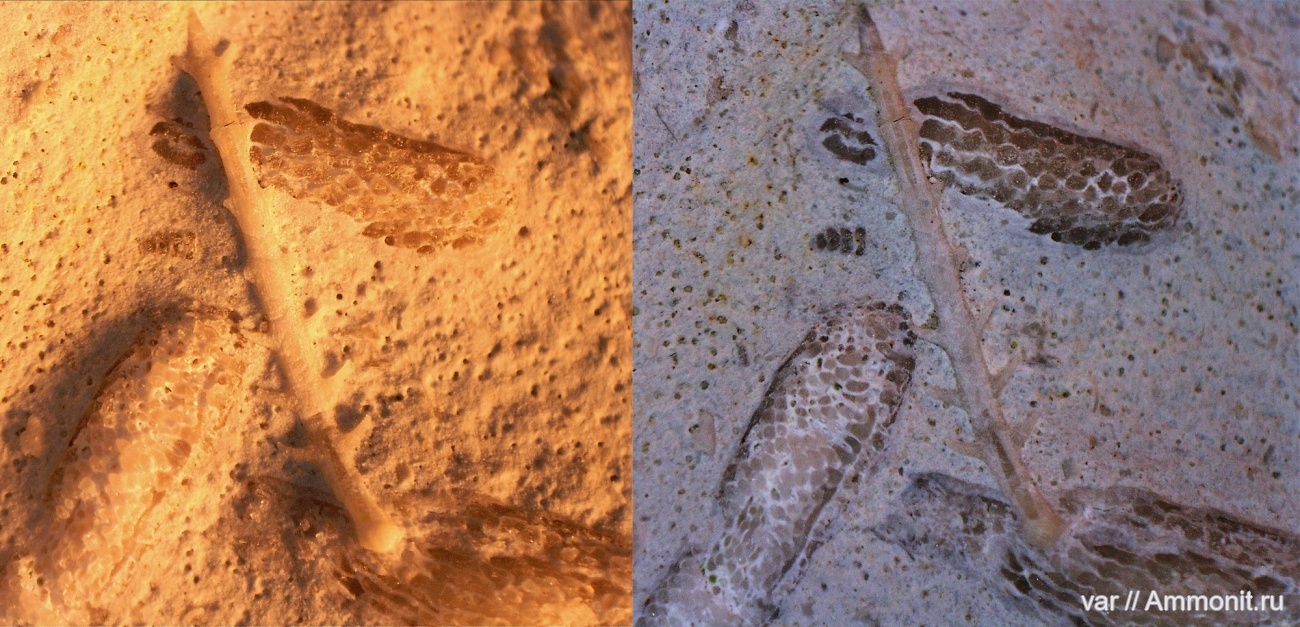 Размер - 0.7 см. Вероятно гжельский ярус карбона. Царев курган. USB-микроскоп. Разные варианты освещения.
