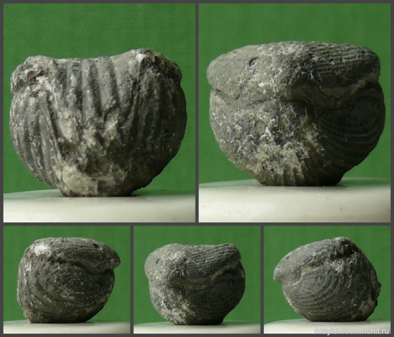 Находка хорошая, но раковина сфотографирована кверх ногами. Ее прижизненная ориентация была на другой створке, как свободно лежащий тип у взрослой брахиоподы. В таком положение при открывание створок брахиопода "накушается" донных отложений (см. книгу Макридин 1952 и Макридин 1964). | ||||||