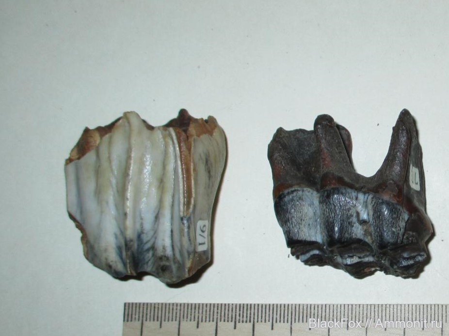 Справа какой-то крупный олень (лось? мегалоцерос? - нужна жевательная поверхность). Слева - не понятно, аналогично нужна ЖП. Различение же тура и бизона по зубам - задача грустная и неблагодарная. | ||||||