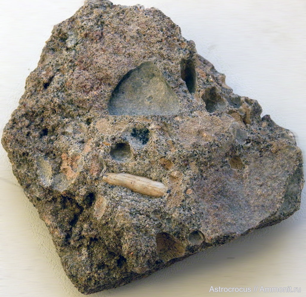 Небольшой кусочек триасового песчаника с фрагментом кости.