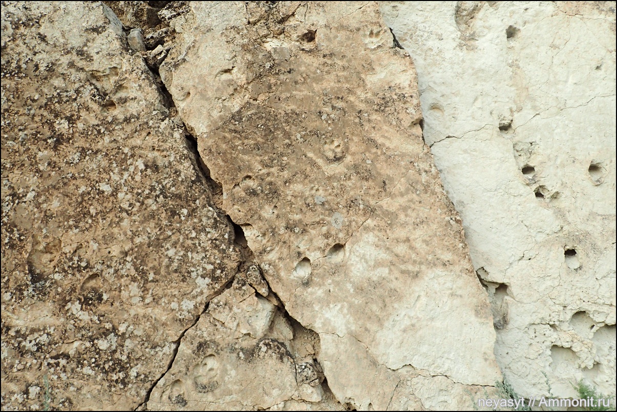 Отпечатки на плите в провале Жигылган или Упавшая земля на полуострове Мангышлак в Казахстане