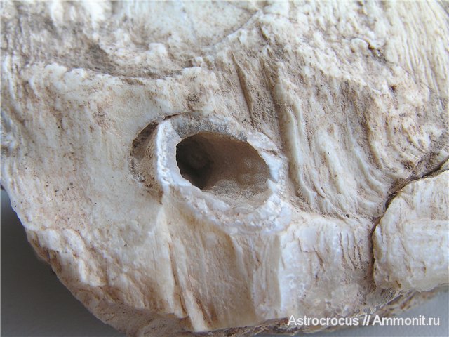 Ещё одно отверстие на том же куске окаменелого дерева, опал / халцедон.