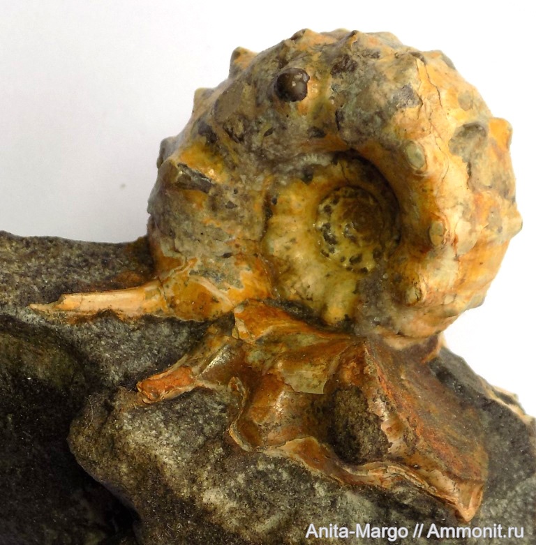 вид грозный! прям в боевую позицию стал. такой аммонит хищнику не проглотить | ||||||