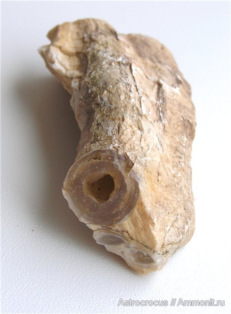 Это ход моллюска-древоточца. Такие ходы как правило выполнены халцедоном и бывают нередко прочнее, чем сама древесина. В некоторых случаях от дерева остаются только такие "трубки" и древесная труха. | ||||||