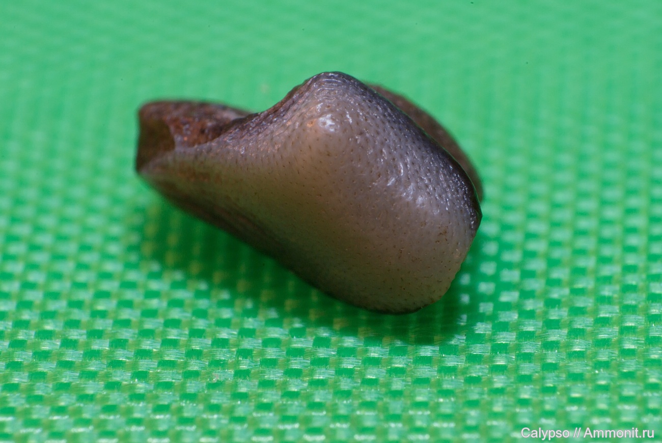 Данный экземпляр был найден совершенно случайно - на работе. Поднял приглянувшийся своим цветом (розоватых оттенков) небольшой камень (максимум 10 X 10 cm). Пригляделся - он был буквально "нашпигован" створками брахиопод отряда Chonetida. Решил его расколоть - дабы выделить хорошие экземпляры раковин, т.к. те, что находились на поверхности, оказались существенно затёртыми (камень притащило ледником). Расколол. Внутри едва заметил слабую чёрную точку, ещё окружённую породой. Обколол на месте до небольшого блока и взял домой. Там кинул под бинокуляр - оказалось, что зуб. Затем окончательно расчистил кусачками и иглами.