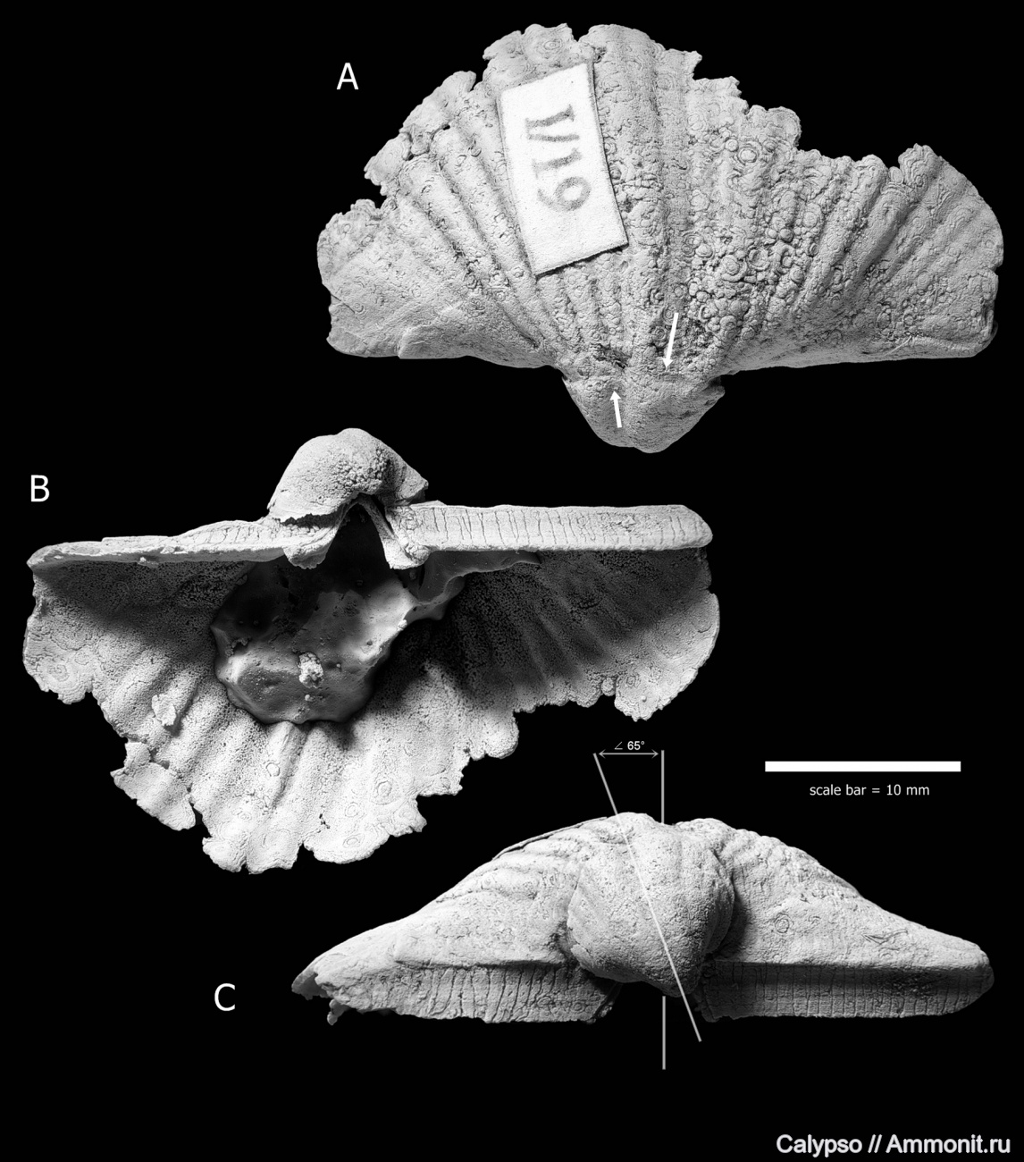 В литературе такое именуется именно, как "уродство" в виду длительного воздействия на животное, а повреждения здесь мы не наблюдаем. Конечно привычнее было бы назвать повреждением все что не симметрично, но это было бы ошибочно т.к. нарушение билатеральной симметрии свойственно всем брахиоподам, а вот идеально ровные раковины - это больше исключение в виду благоприятных условий. По сути здесь уродство как огибание самой раковиной какого-то препятствия (теснота колонии), а не следствие травмы (нет залеченных повреждений). | ||||||