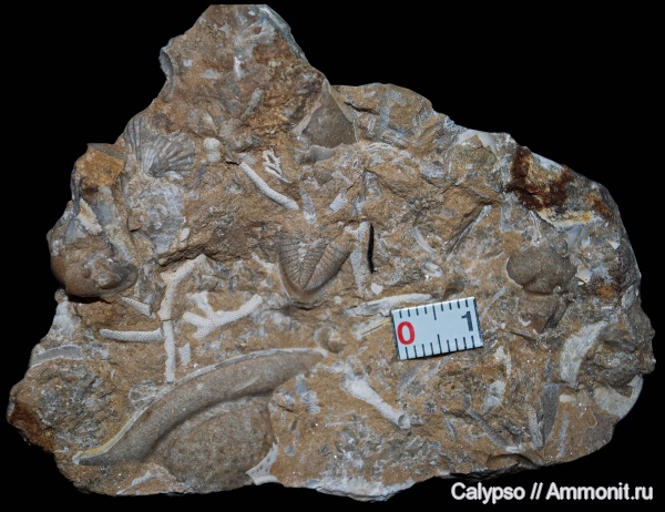 Небольшая плиточка известняка с кукерситом, но зато насыщенная разнообразной фауной. Была найдена в совместной поездке с Олегом. Чего-либо выделять из неё не собираюсь - оставлю как есть, в качестве прекрасного тафономического образца.