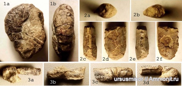 1 - абдомен Hoploparia dentata длиной 37 мм; a - вид справа, b - вид сверху.