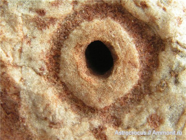 Видно, что трубчатая сердцевинка состоит из более плотного и мелкозернистого песчаника.