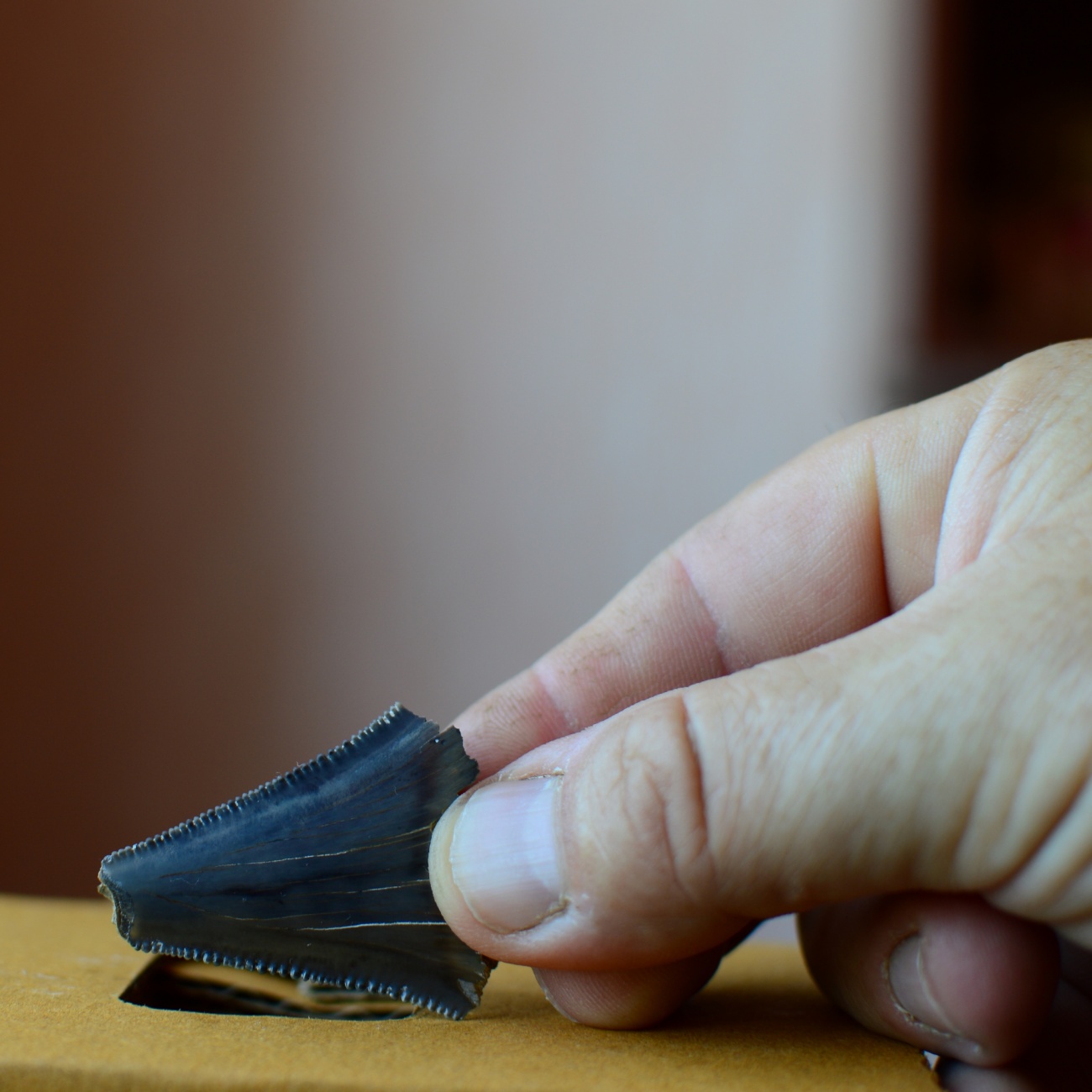 Зуб Otodus (Carharocles) cf. sokolovi. У O.auriculatus все же другой характер зубчатости был бы. | ||||||