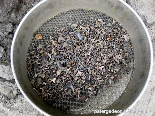 Работы 6 часов. Ну где-то 50-60 сит. Пока не считал,но около 1500 зубов,не считая позвонков,осколков зубов завров и прочих фоссилий. Это идет заготовка к зиме,для долгих зимних вечеров) | ||||||