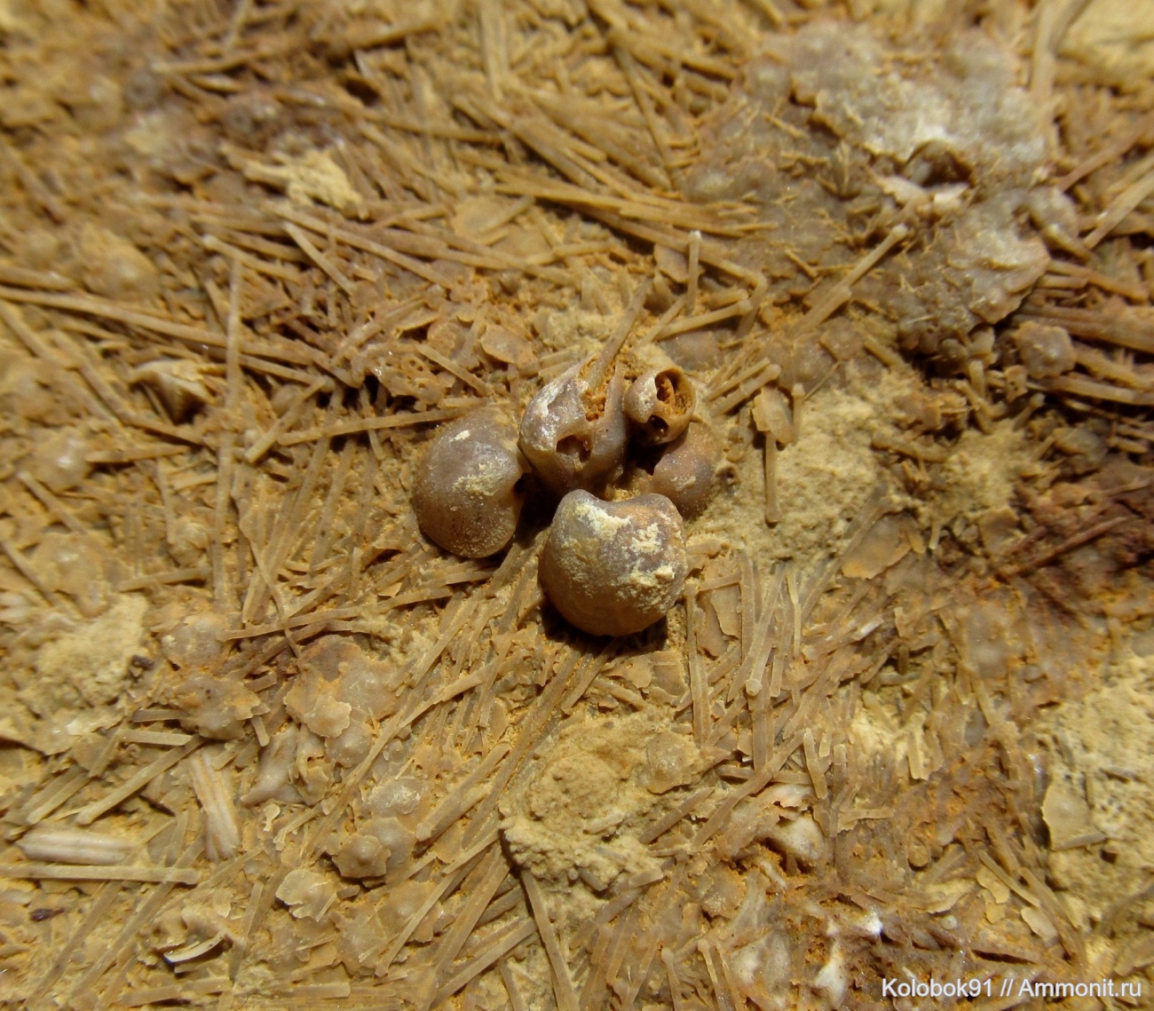 В принципе известны находки в виде прижизненного скопления брахиопод, оторванных от основной колонии-банки, которые вот также ложились затем кверх тормашками и поверх них поселялись уже новые брахиоподы (возможно это тотже случай). Но опять же у природы свои забавы и если плиты были перемешены, возникает слишком много разных "но", чтобы однозначно утверждать. Что очень необычно: ориентация брахиопод и словно не сохранившеся основание прикрепления при фоссилизации, - собственно нет субстрата к чему и прикреплялись раковины, а ориентировка есть! Так что помимо ежей получилась не менее интересная находка и брахиопод! | ||||||