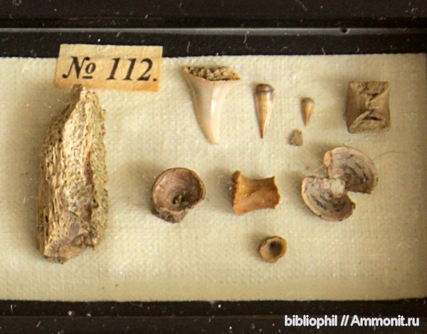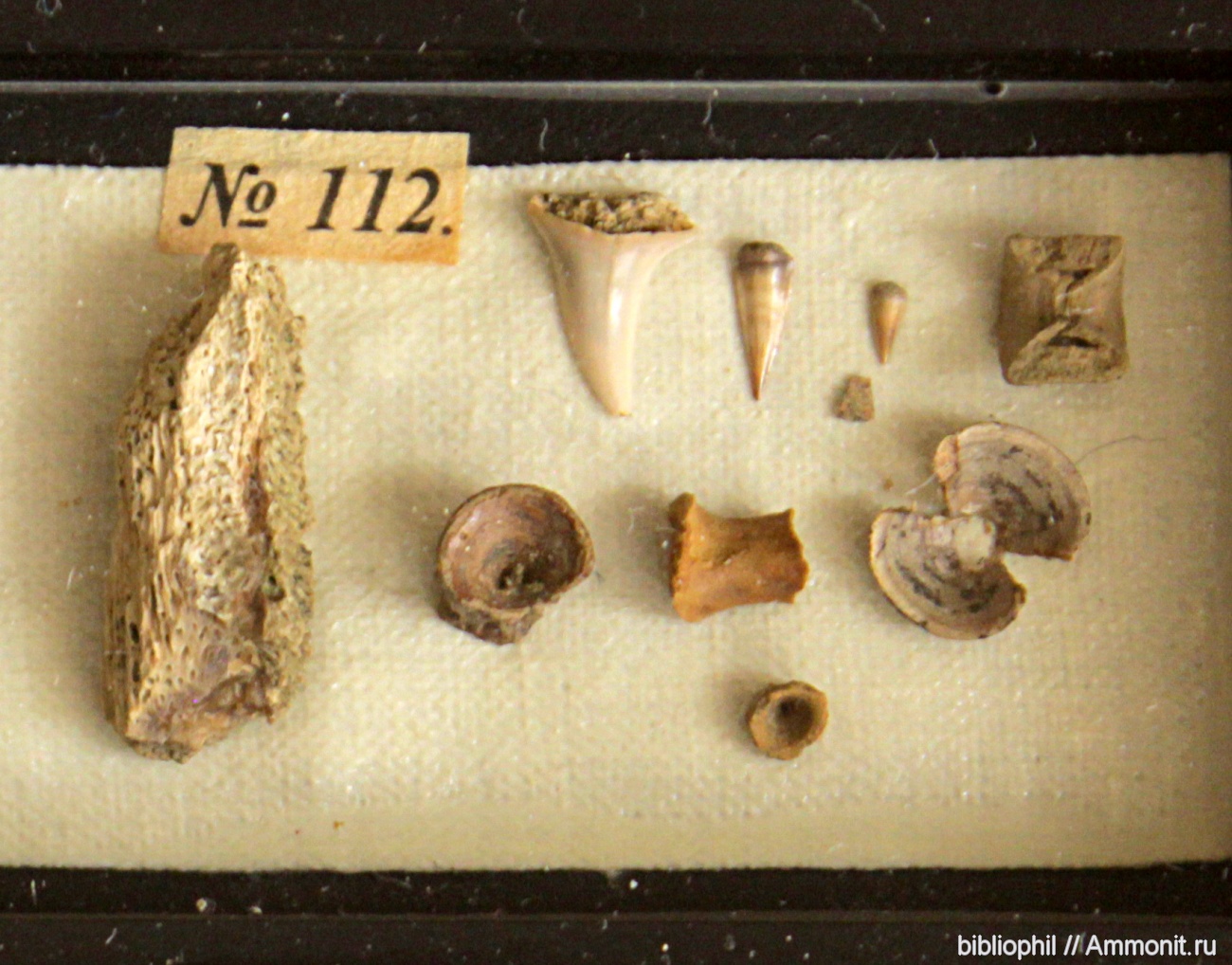 Образец слева возможно фрагмент челюстной пластины химеры, к сожалению, плохо понятно, есть ли там триторы или нет. Зуб акулы Lamniformes indet. Костистых рыб вообще сложно определять по отдельным зубам, возможно это что-то вроде Apateodus или из Ichthyodectiformes. | ||||||