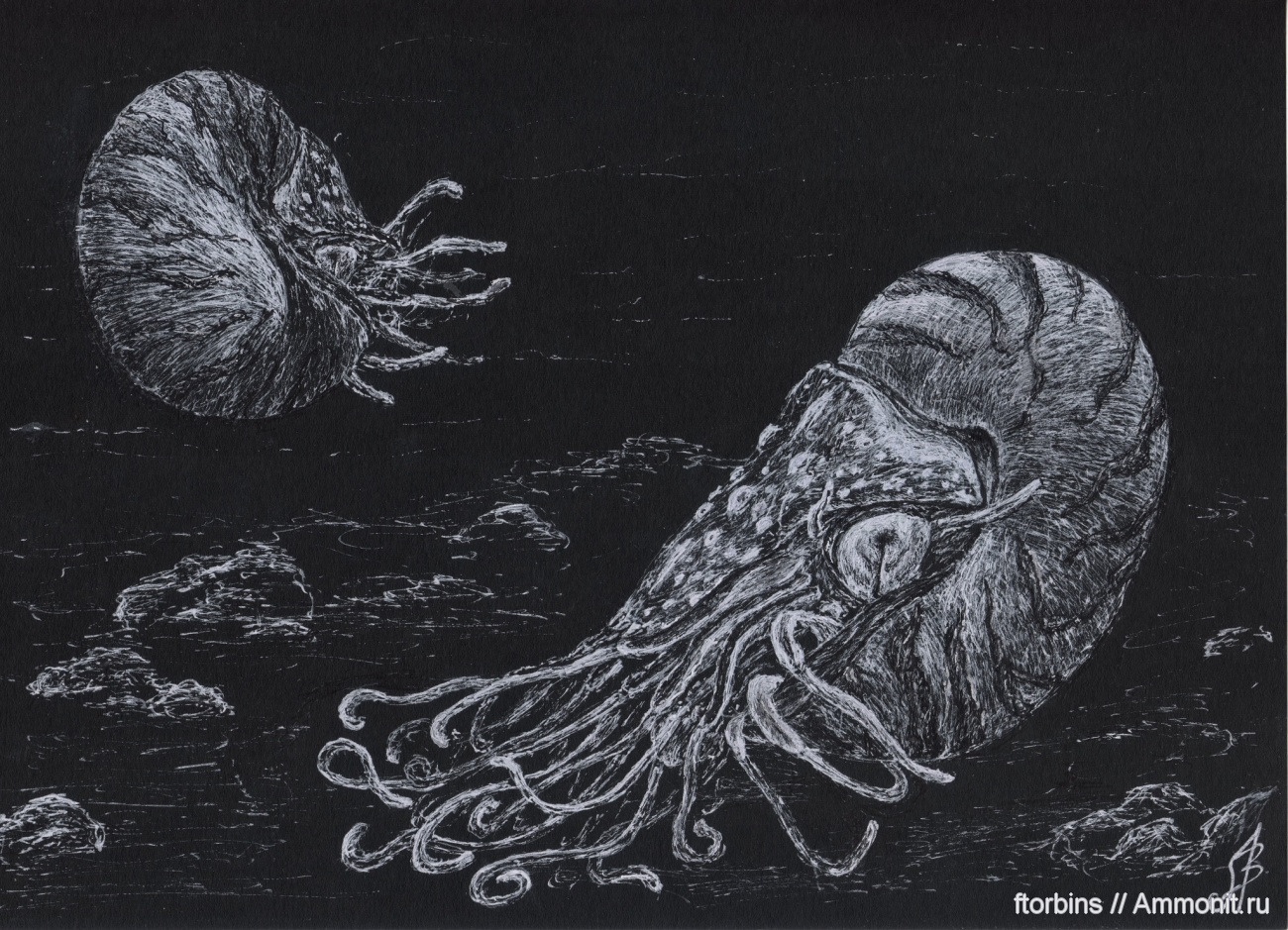 Спасибо. Долго рассматривала наутилусов в аквариуме(у них очень интересное поведение), наблюдала за движением воронки (т.к. когда у актиноцериды воронку рисовала, было любопытно, как там у головоногих все устроено). | ||||||