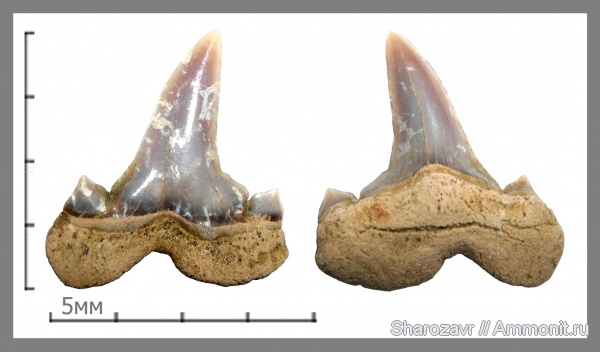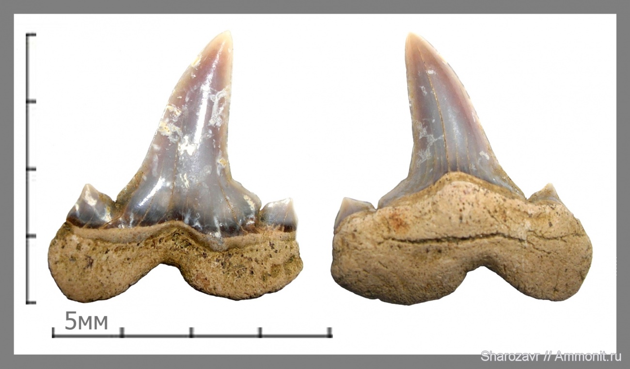 Зуб из тех же поездок и того же фосфоритового горизонта. Разница с предыдущим зубом заметна. Возможно этот экземпляр больше подходит под Cretolamna appendiculata?