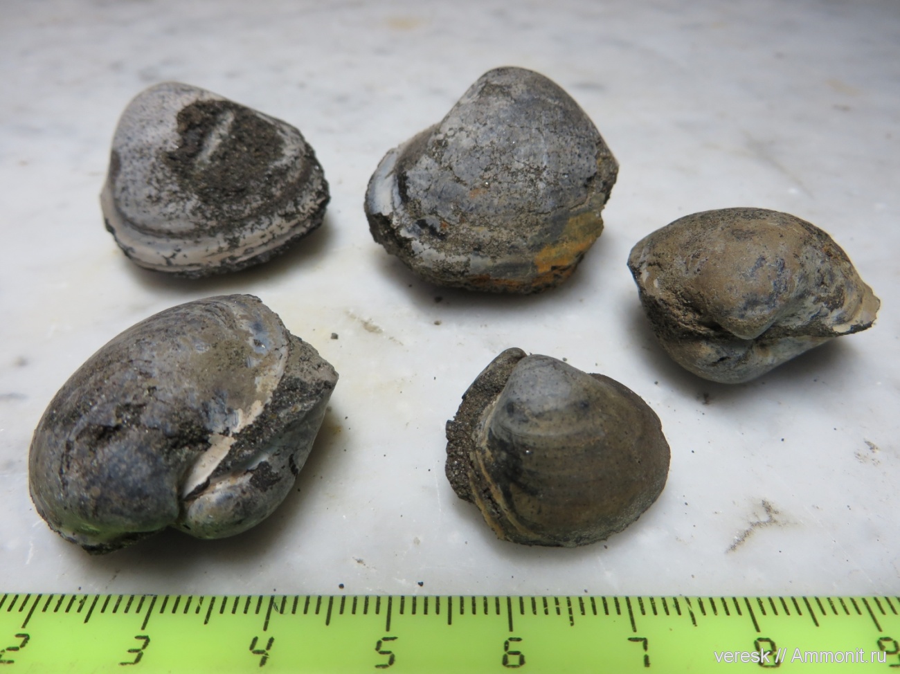 Это не сами двустворки, а только внутренние ядра от раковин двустворчатых моллюсков Mactromya excentrica (d'Orbigny emend. de Loriol, 1872). | ||||||