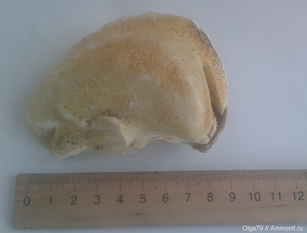 Нету там челюстей с зубами )) Это слепок замочной части раковины, вот например: Двустворчатый моллюск Nucula sp.. На раковине есть специальные "зубы" - выступы, чтобы створки относительно друг-друга не смещались. А у Вас ядро (то есть внутренний слепок полости раковины) и на нем отпечатки этих "зубов". | ||||||