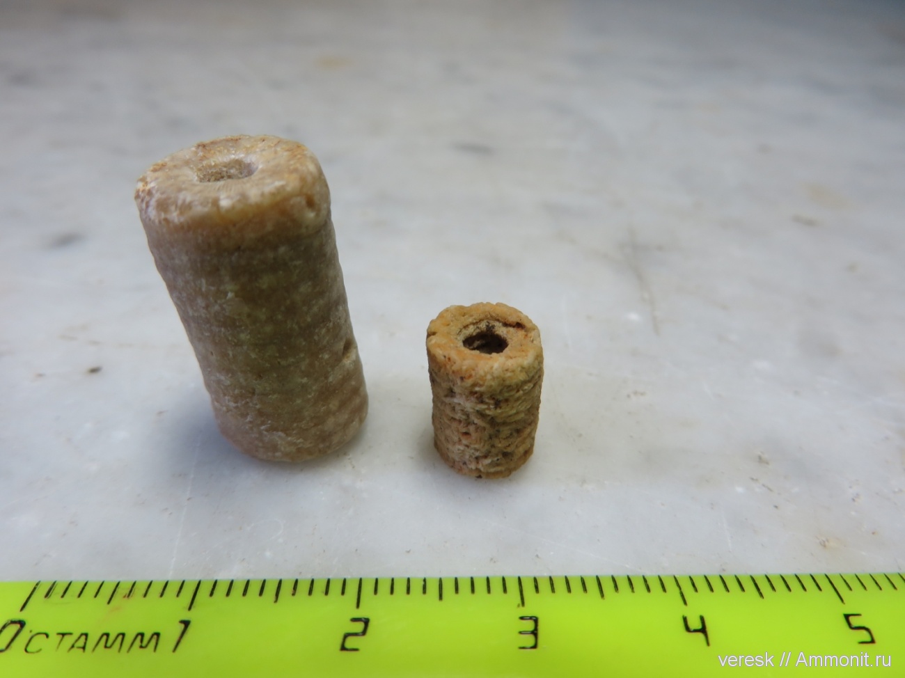 Членики стеблей морских лилий со дна оврага, где протекает речка Мозжинка.