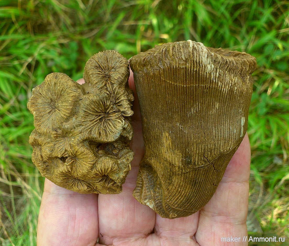 Спасибо Марина! Честно говоря я эти два даже зарыть хотел обратно... Остановило только больно уж явные полосы одиночного и какая-то цветистость колониального... А так уже глаз замылился и не удивляюсь давно... Думаю вам по аммонитам это знакомо. В краях ваших их валом, если искать ))) | ||||||