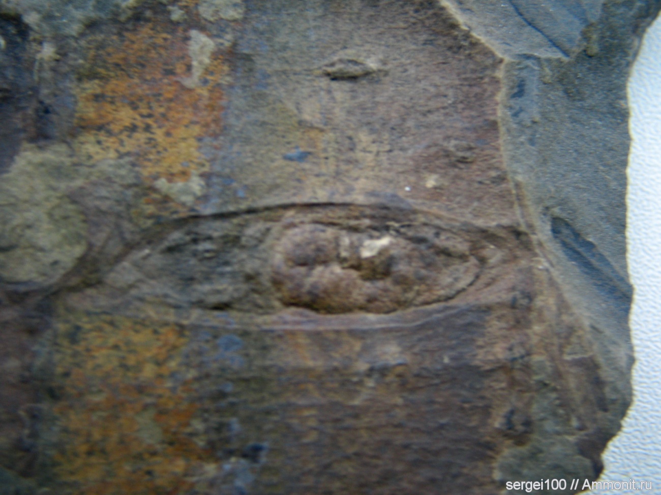 отпечаток в стволе, как бы в коконе сформировался но не успел вылезть. сам отпечаток 2см. | ||||||