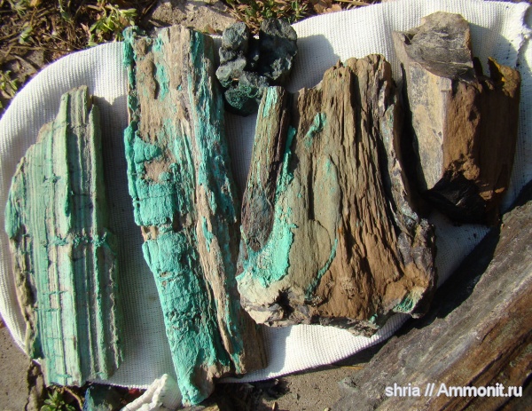 Малахит не попадался. Находила маленькие кусочки азурита. | ||||||