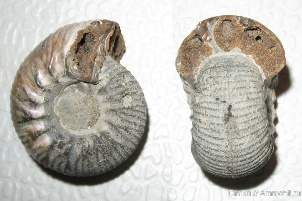 Фото одной и той же раковины аммонита с двух сторон. Найдена в 1996 году в республике САХА, Анабарский национальный улус (район), п. Юрюнг-Хая, р. Анабар, около 80 км. вверх по течению реки от поселка, нижний мел. Диаметр раковины около 36 мм, ширина 24 мм. Аммонит подарен мне Дубининым В.