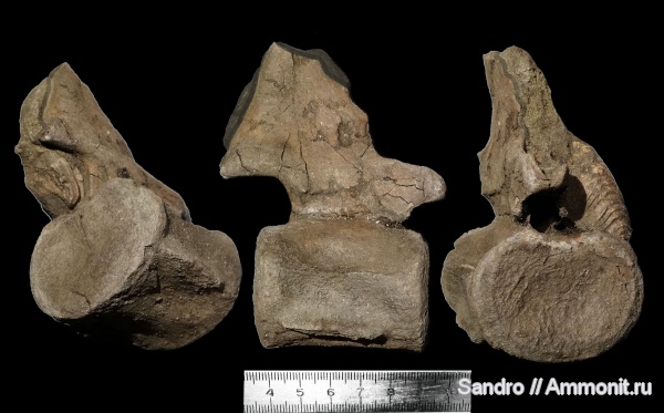 Позвонок плезиозаврида с частично сохранившимся отростком.