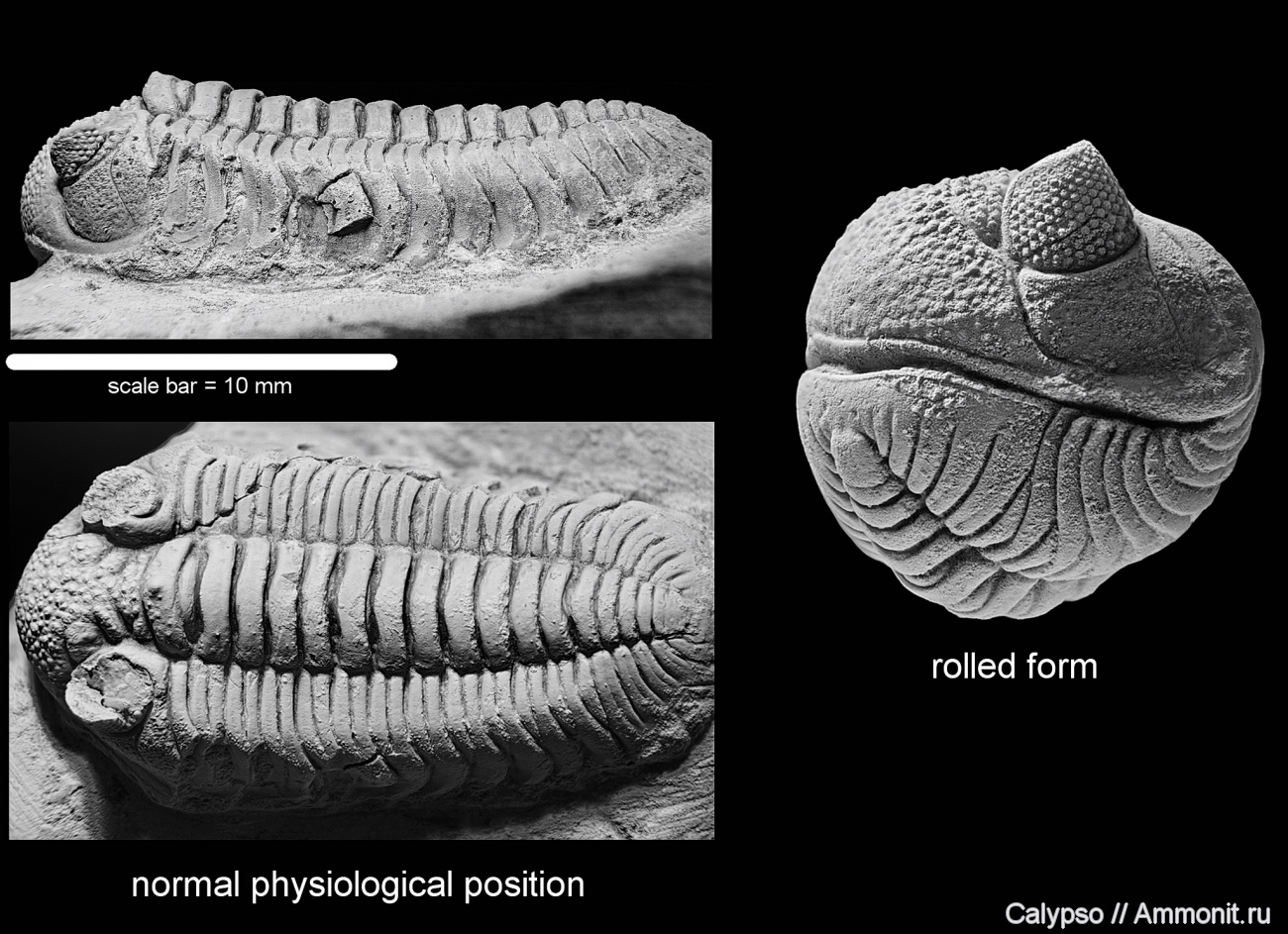 Картинка показывает две основные прижизненные формы трилобита - нормальную физиологическую и свёрнутую.