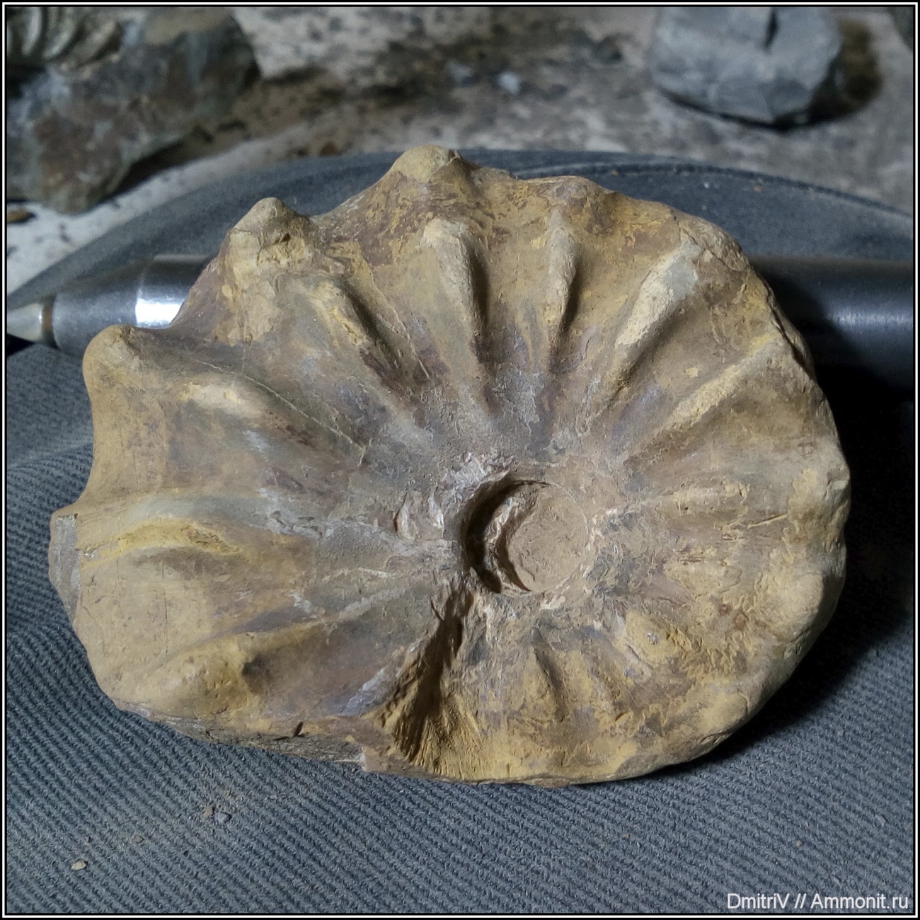 В окрестностях мы находили Macroscaphites, Epicheloniceras, Phyllopachyceras prendeli и другие нижнемеловые аммониты, поэтому вряд ли сеноман. На Mammites очень похож, но тут внутренние обороты сильно перекрываются внешними. | ||||||